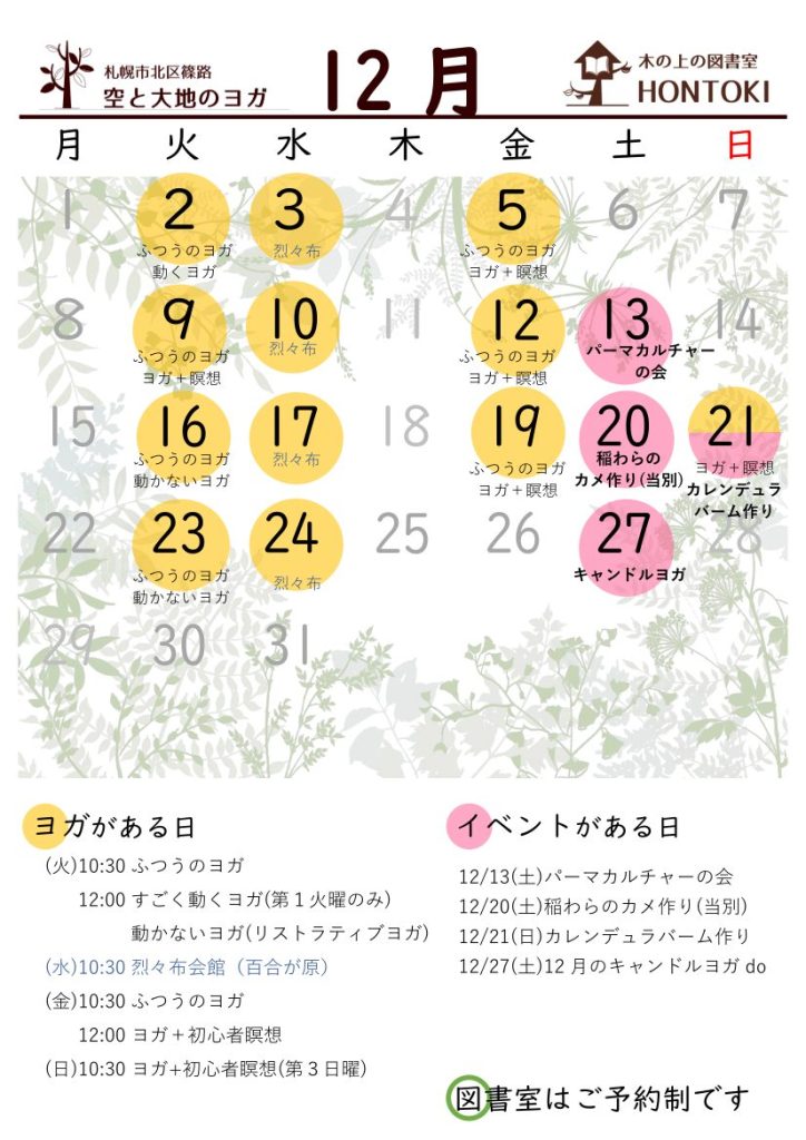 特別ヨガクラスや単発講座の年間予定